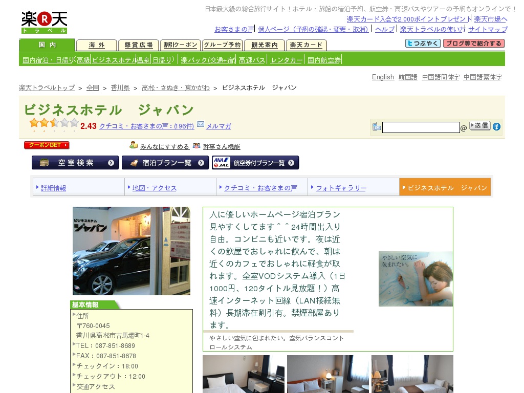 ビジネスホテルジャパン 高松市古馬場町1-4 087-851-8689