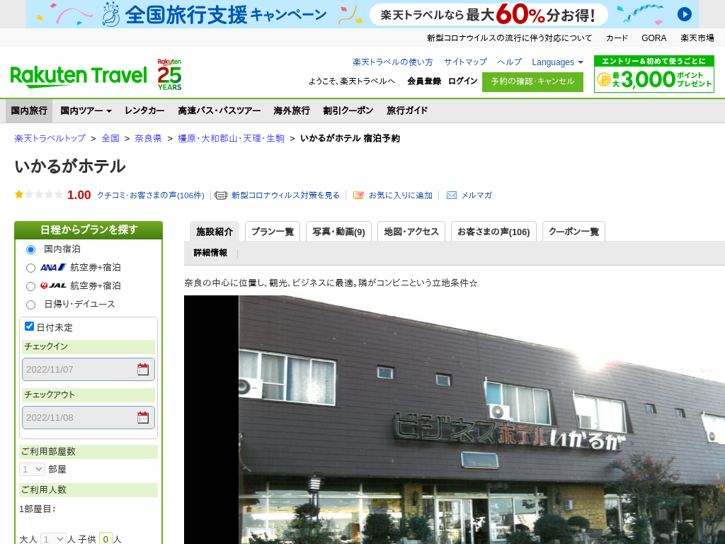 | ホテルいこい | 天理市川原城町297 | 0743-62-0030 | ![]() 67% |
