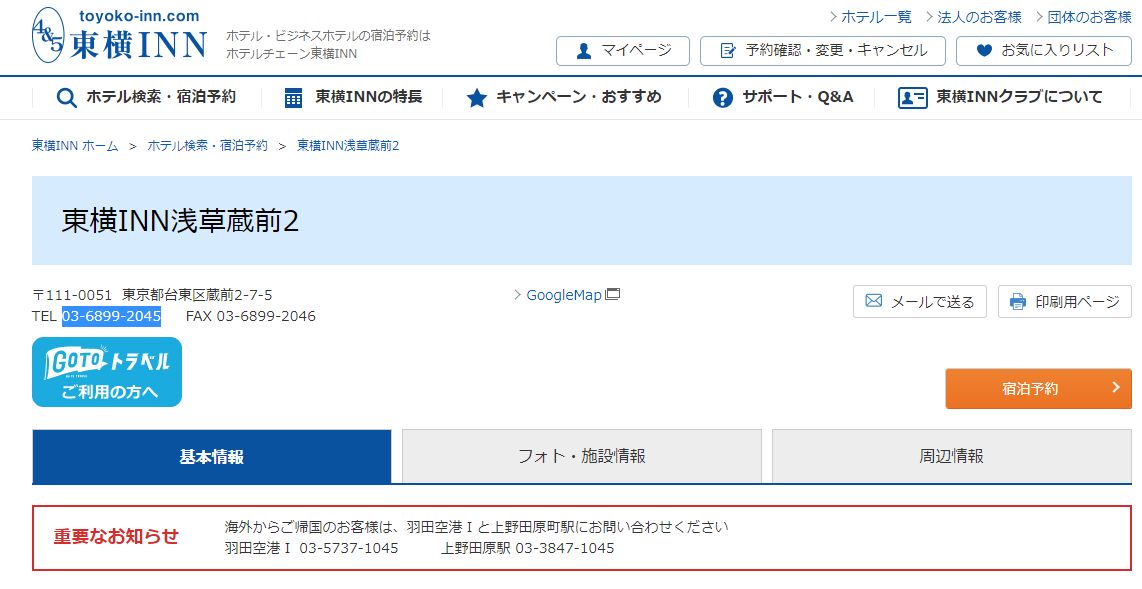 | 東横イン浅草蔵前2 | 台東区蔵前2-7-5 | 03-6899-2045 | ![]() 100% |