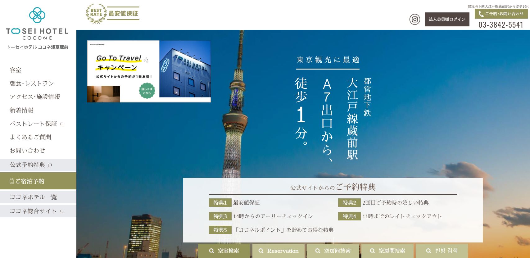 トーセイホテルココネ浅草蔵前 台東区駒形2-3-3 03-3842-5541