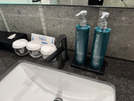 • 洗面台にはアメニティの数々とハンドソープやボディローションが。ごちゃごちゃしてないのですっきりと利用できました。