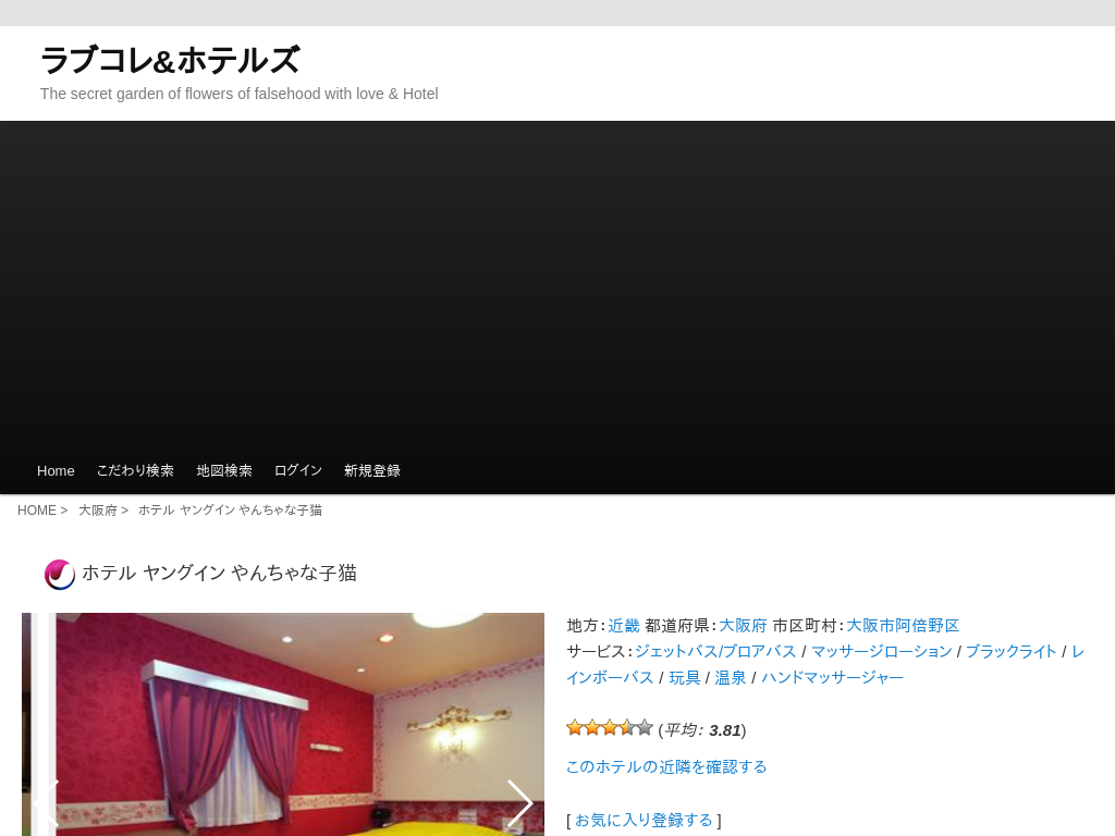 | ホテル ヤングイン やんちゃな.. | 大阪市阿倍野区松崎町2-3-47 | 06-6621-1858 | ![]() 75% |