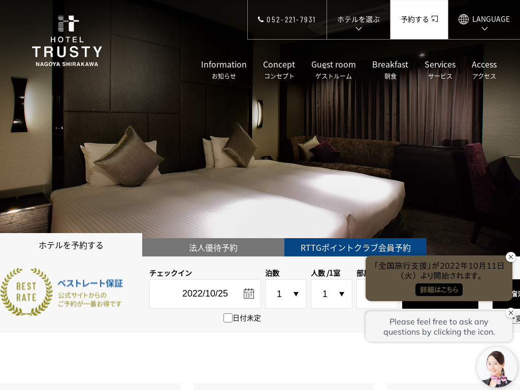 | ホテルトラスティ 名古屋 白川 | 名古屋市中区栄2丁目7-13 | 052-221-7931 | ![]() 100% |
