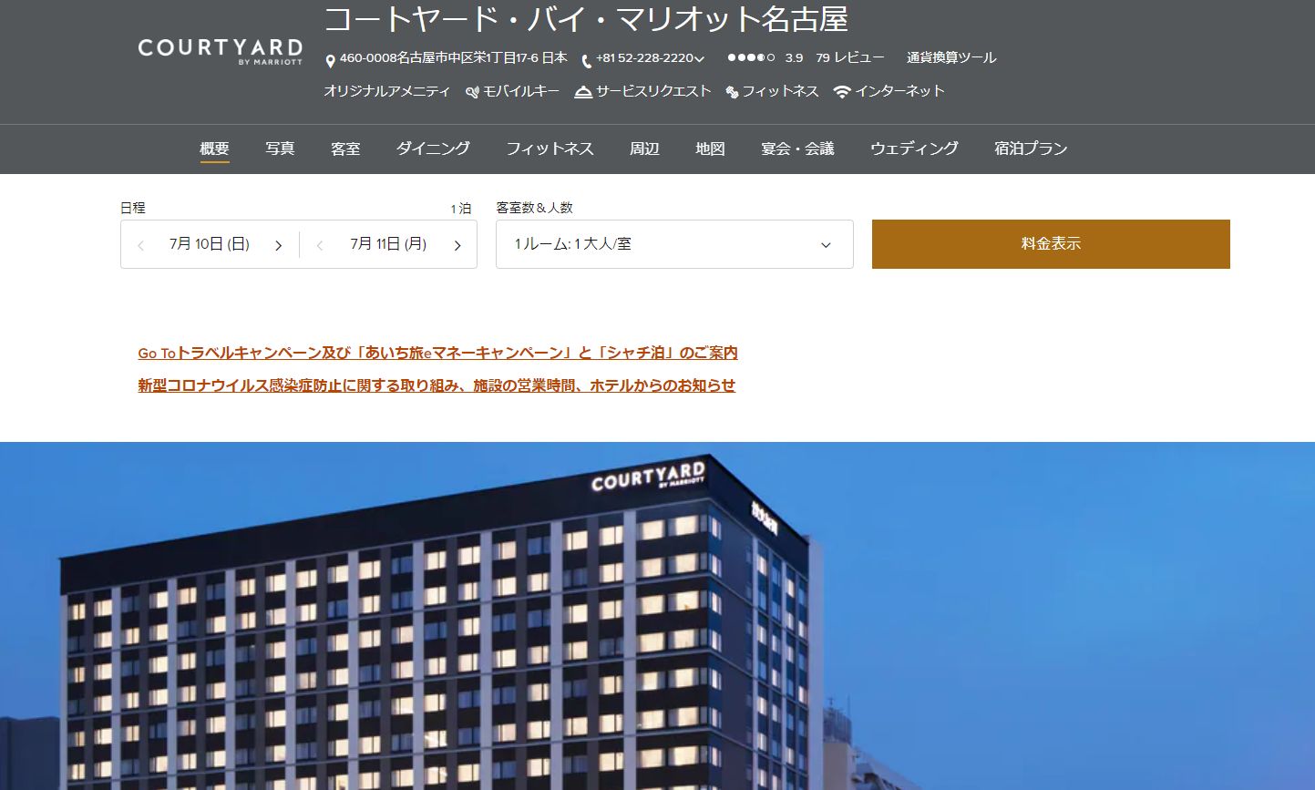 | コートヤード・バイ・マリオッ.. | 名古屋市中区栄1-17-6 | 052-228-2220 | ![]() 100% |