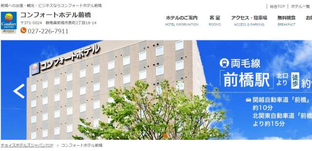 | コンフォートホテル前橋 | 前橋市表町2丁目18-14 | 027-226-7911 | ![]() 100% |