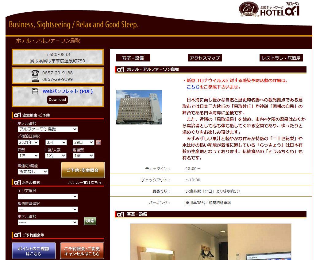 | ホテル・アルファーワン鳥取 | 鳥取市末広温泉町759 | 0857-29-9188 | ![]() 0% |
