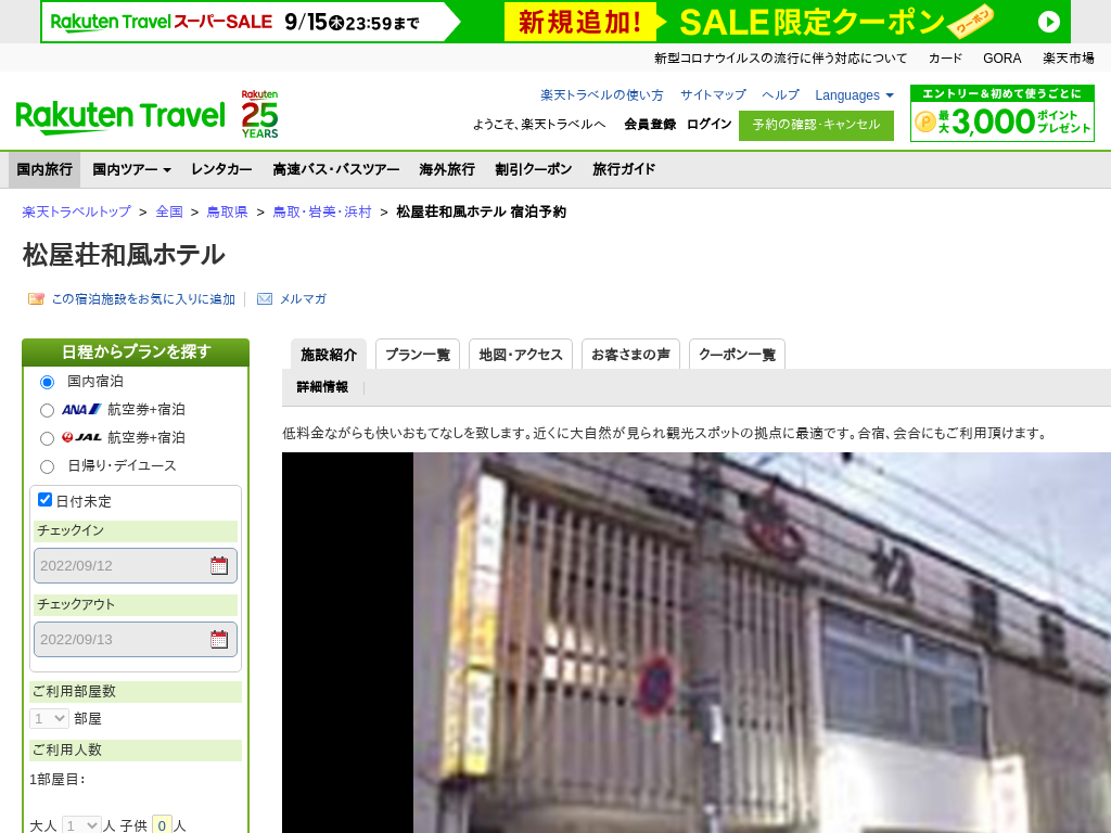 | 松屋荘和風ホテル | 鳥取市3丁目814 | 0857-22-4891 | |